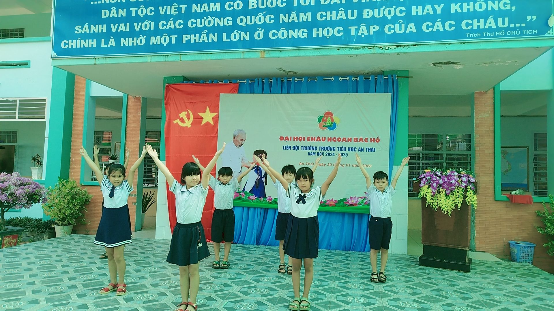 🎉Thực hiện chỉ đạo của HĐĐ huyện về việc tổ chức Đại hội Cháu ngoan Bác Hồ cấp Liên đội tiến tới ĐH Cháu ngoan Bác Hồ huyện Phú Giáo năm học 2024 – 2025. Sáng 20/01 Liên đội đã tổ chức Đại hội Cháu ngoan Bác Hồ cấp Liên đội nhằm tuyên dương các em Đội viên đạt danh hiệu Cháu ngoan Bác Hồ cấp Liên đội và cấp xã năm học 2024 – 2025