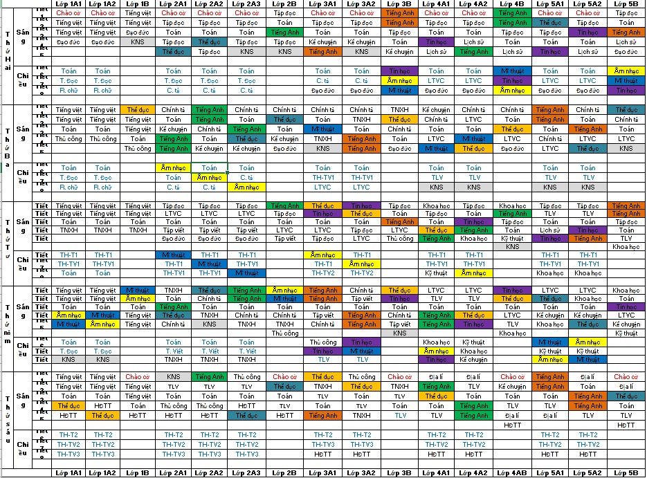 LỊCH BÁO GIẢNG LỚP 1 2024-2025