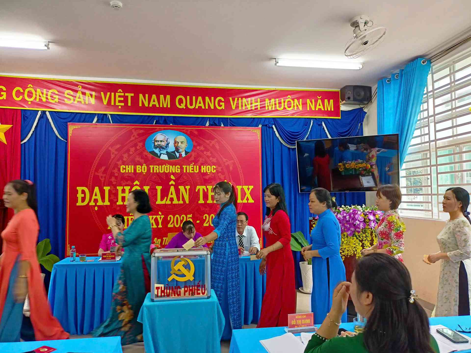 – Đại hội chi bộ Trường Tiểu học An Thái lần thứ IX đã thông qua các văn kiện quan trọng như: Báo cáo tổng kết nhiệm kỳ 2022-2025, phương hướng nhiệm vụ nhiệm kỳ 2025-2027; Báo cáo kiểm điểm chi uỷ nhiệm kỳ 2022-2025, Đại hội cũng đã tiến hành bầu chi ủy chi bộ nhiệm kỳ 2025-2027 với kết quả các đồng chí: Phạm Thị Thanh Hòa, Nguyễn Văn Lợi và Đỗ Thị Thủy được tín nhiệm bầu vào chi ủy chi bộ, tiếp theo đó Đại hội cũng đã tiến hành bầu trực tiếp các chức danh Bí thư, P Bí thư chi bộ. Với kết quả tín nhiệm cao của Đảng viên trong chi bộ đồng chí Phạm Thị Thanh Hòa – Bí thư chi bộ khóa VIII tiếp tục được bầu giữ chức vụ Bí thư chi bộ, đồng chí Nguyễn Văn Lợi được bầu giữ chức vụ P Bí thư chi bộ nhiệm kỳ 2025-2027.