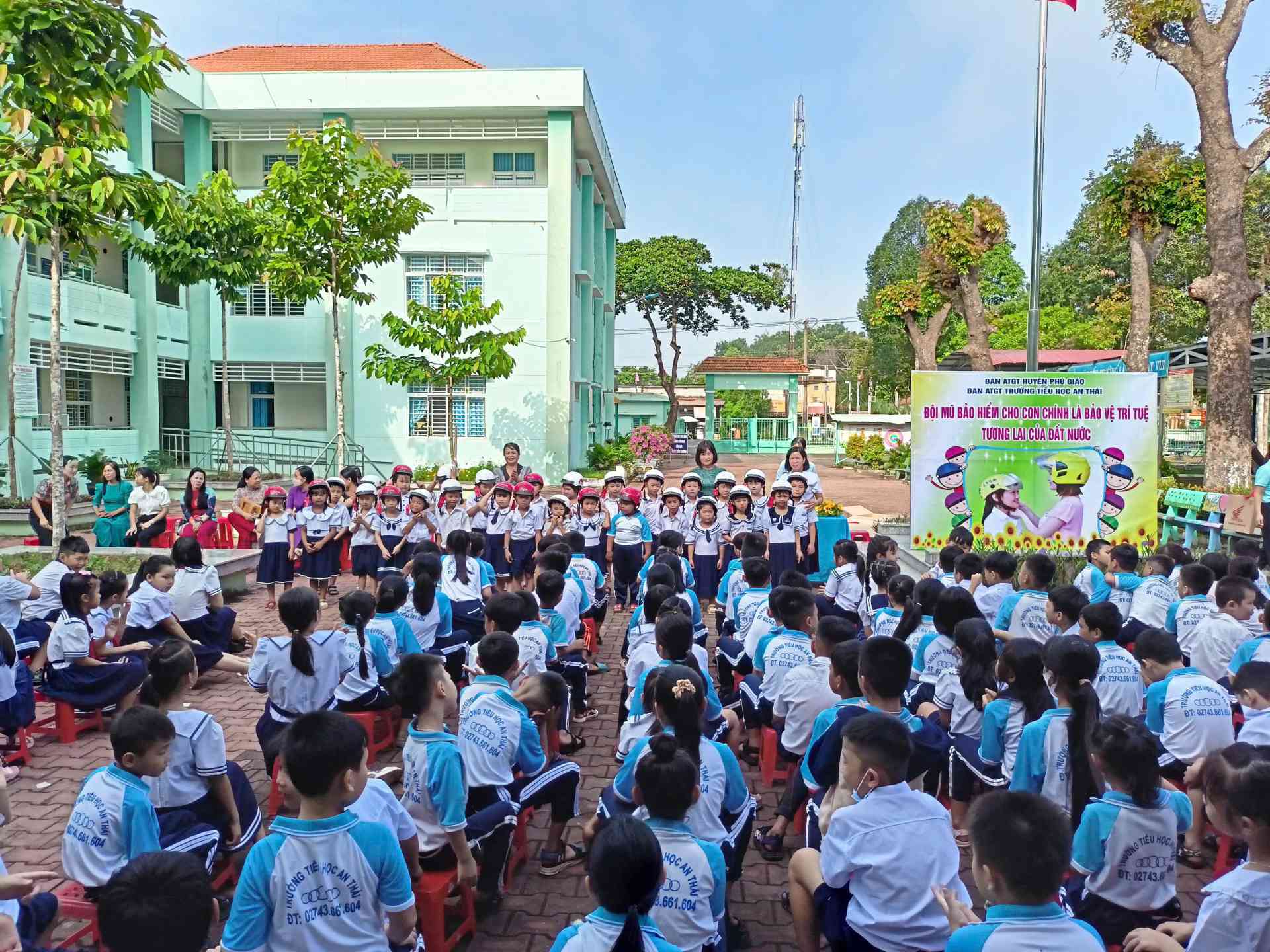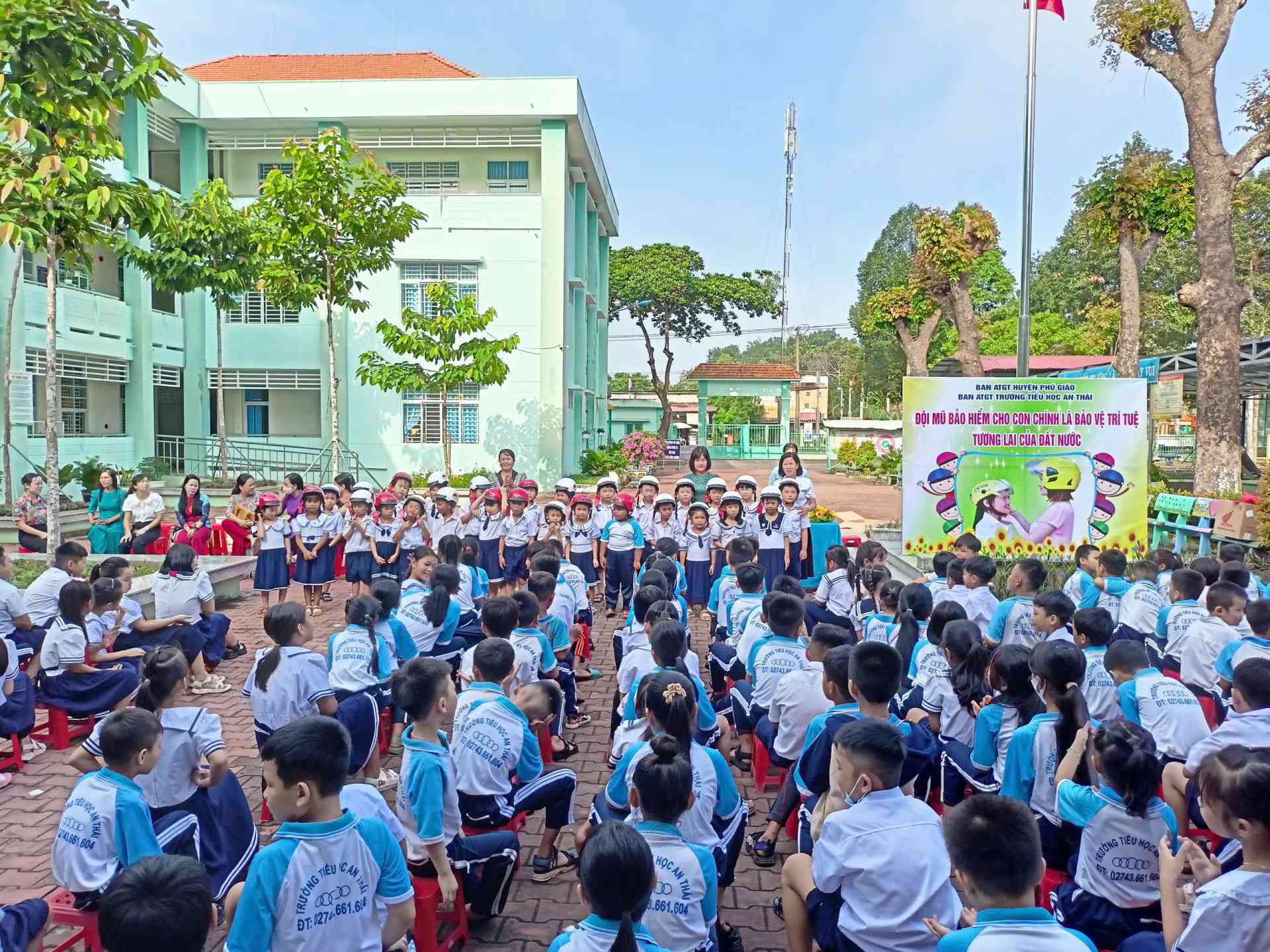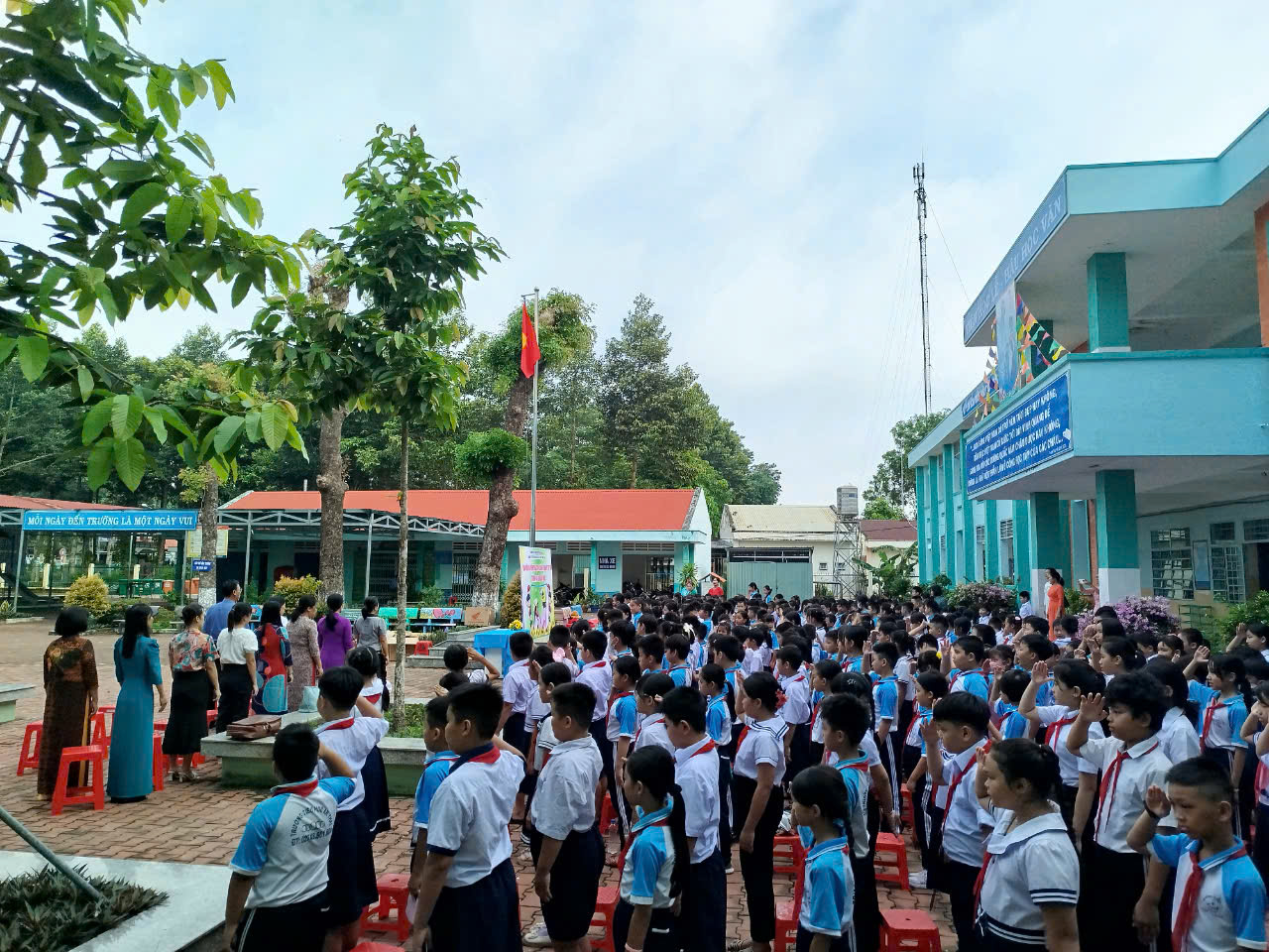 Cùng các cô giáo là chủ nhiệm các lớp từ khối 1 đến khối 5 và hơn 300 em học sinh Liên đội trường Tiểu học An Thái.