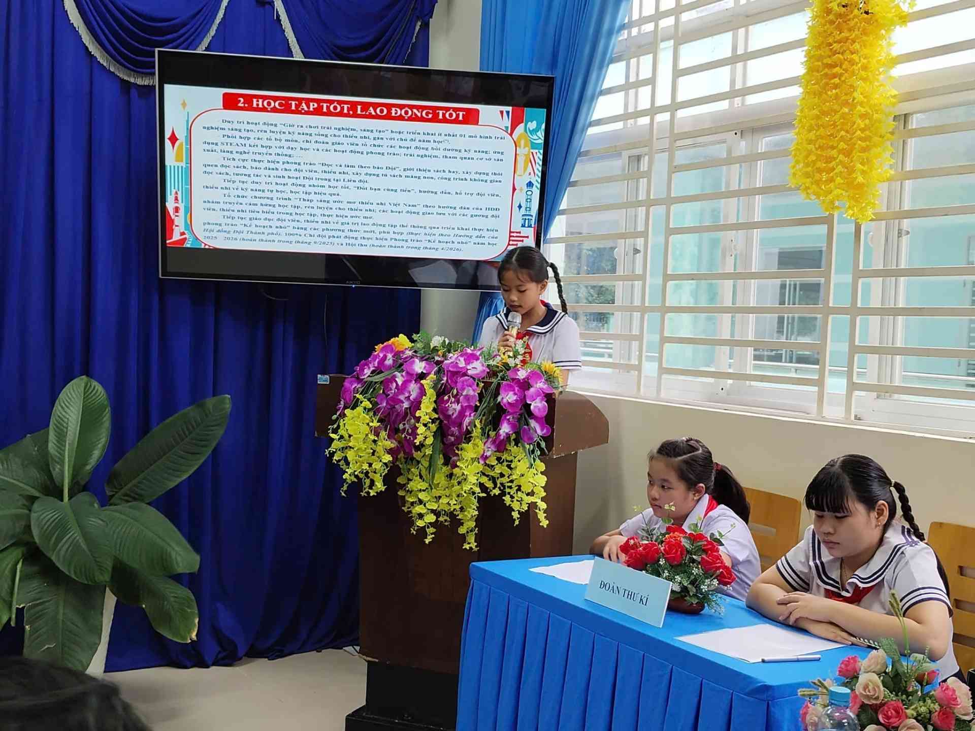 Tại Đại hội, các đại biểu và đội viên đã cùng nhau lắng nghe báo cáo tổng kết công tác Đội năm học 2024 – 2025 và đóng góp ý kiến cho phương hướng hoạt động năm học 2025 – 2026.