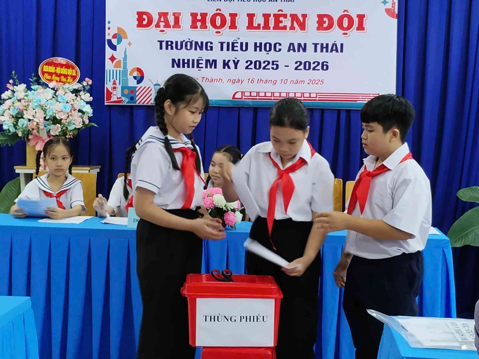 Chiều ngày 16 tháng 10 năm 2025, Liên đội Trường Tiểu học An Thái long trọng tổ chức Đại hội Liên đội nhiệm kỳ 2025 – 2026. Đây là dịp để đội viên toàn trường cùng nhìn lại chặng đường đã qua, đánh giá những kết quả đạt được và đề ra phương hướng hoạt động cho năm học mới.