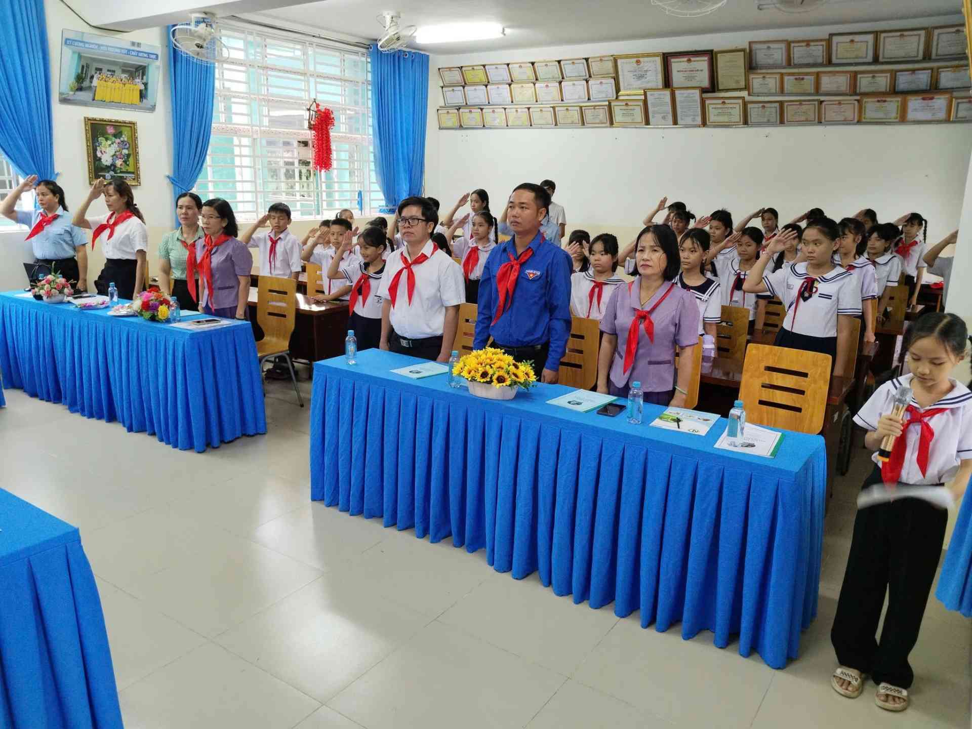 Phát biểu chỉ đạo, anh Trịnh Hoàng Thiện và cô Phạm Thị Thanh Hoà ghi nhận, biểu dương những thành tích đáng tự hào của Liên đội trong năm học qua, đồng thời gửi gắm niềm tin và kỳ vọng vào đội ngũ chỉ huy mới – những gương mặt tiêu biểu, năng động, giàu tinh thần trách nhiệm.