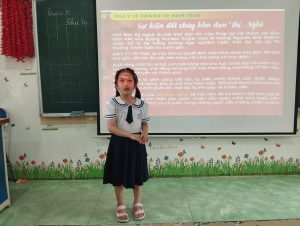 Không khí buổi sinh hoạt diễn ra sôi nổi, thân thiện. Nhiều học sinh lớp 1A1 mạnh dạn giơ tay phát biểu, thể hiện sự hứng thú và cảm xúc trước tấm gương anh hùng. Các em biết nói lời cảm ơn, bày tỏ tình yêu với quê hương, đất nước bằng những việc làm nhỏ như chăm ngoan, học giỏi, lễ phép với thầy cô, cha mẹ.