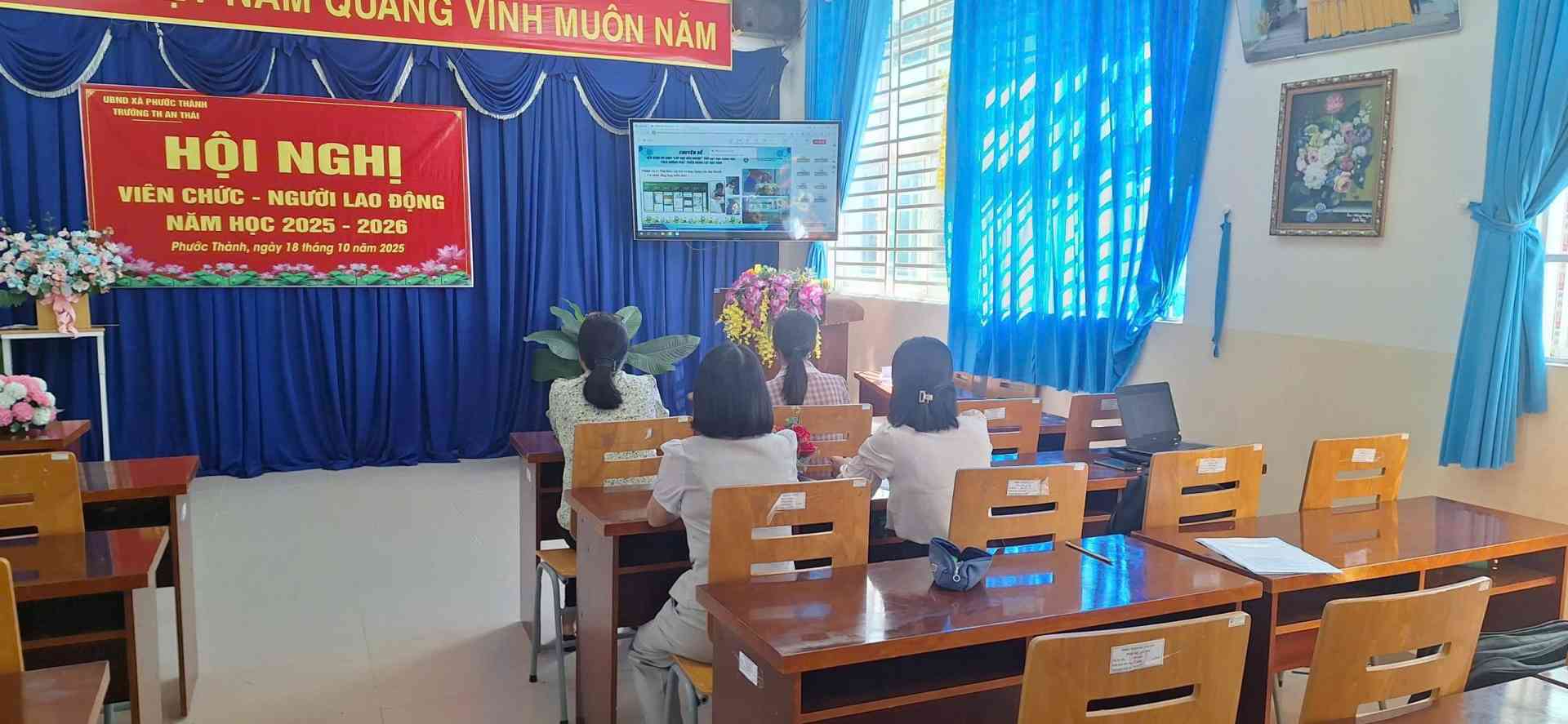 Thực hiện công văn số 839/UBND-VHXH ngày 22/10/2025 của Ủy ban nhân dân xã Phước Thành💥Hôm nay ngày 31 tháng 10 năm 2025, Trường Tiểu học An Thái tổ chức dự tập huấn trực tuyến cho giáo viên khối 4💥💫 Với mục đích giúp giáo viên có kỹ năng và phương pháp vận dụng mô hình lớp học đảo ngược và dạy học khoa học theo hướng phát triển năng lực cho học sinh.💥❤️ sau đây là hình ảnh minh họa ❤️❤️❤️